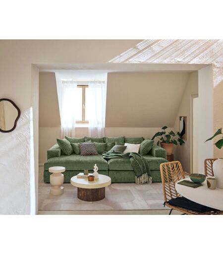 Lisa Design - Collins - canapé droit 4 places avec double méridienne - assise profonde - en velours texturé - vert