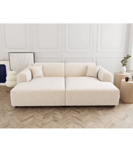 LISA DESIGN Aumance - canapé droit 4 places avec double méridienne assise profonde en velours texturé - beige