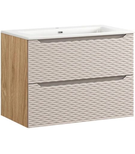 PETITS-MEUBLES Meuble simple vasque encastrée 80cm Elora Beige et bois
