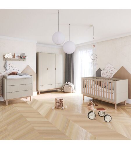 Chambre complète lit évolutif 70x140 commode à langer et armoire 3 portes Pinio Miloo Champagne