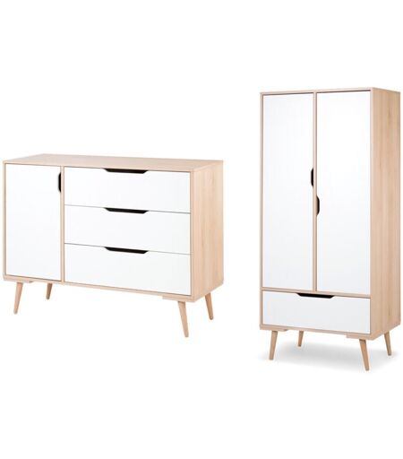 Commode et armoire LittleSky by Klups Sofie Hêtre et Blanc Marque : LittleSky by Klups Couleur : Hêtre et Blanc Produit : Commode 1 porte 2 tablettes verrouillables 3 tiroirs Glissières à billes Poids commode : 46kg Dimensions: Commode: 120 x 45 x 94 cm Produit : Armoire 2 portes 3 tablettes 2 tringles 1 tiroir Glissières à billes Portes et tiroirs équipés d'un système de freinage et de fermeture automatique Poids armoire 2 portes : 61kg Dimensions armoire 2 portes : 80 x 50 x 180 cm Garantie : 24mois Normes de sécurité : EN 71-3 garantissant la sécurité des matériaux utilisés pour les enfants EN 716-1 garantissant la sécurité et la stabilité des lits pour bébés et un espacement sécurisé entre les barreaux du lit EN 12221-1 et 12221-2 garantissant la sécurité et la stabilité des tables à langer EN 14749 garantissant la sécurité et la stabilité des meubles de rangement Consignes de sécurité : Fixer solidement le meuble au mur Respecter les charges maximales recommandées indiquées sur ...