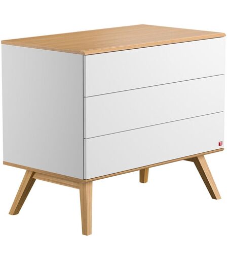 Commode 3 tiroirs Vox Nature - Blanc Marque: Vox Fabrication européenne Matériaux : Plateaux et pieds en chêne massif Structure en bois mélaminé haut de gamme Couleur : blanc, pieds et plateau supérieur en bois Commode : 3 tiroirs Ouverture "Push Open" Fermeture silencieuse Poids et dimensions commode : 45 kg 100 x 58 x 86.5 cm Conditionnement : produit livré, à monter, avec notice incluse. Normes de sécurité : EN 71-3 garantissant la sécurité des matériaux utilisés pour les enfants EN 716-1 garantissant la sécurité et la stabilité des lits pour bébés et un espacement sécurisé entre les barreaux du lit EN 12221-1 garantissant la sécurité et la stabilité des tables à langer EN 14749 garantissant la sécurité et la stabilité des meubles de rangement EN 717-1 garantissant de faibles émissions de formaldéhyde pour un environnement sain Consignes de sécurité : Monter correctement le lit en fixant bien les éléments Respecter les charges maximales recommandées indiquées sur les notices Avoir ...
