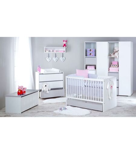 Chambre complète lit bébé évolutif - commode à langer - armoire 3 portes LittleSky by Klups Dalia - Blanc