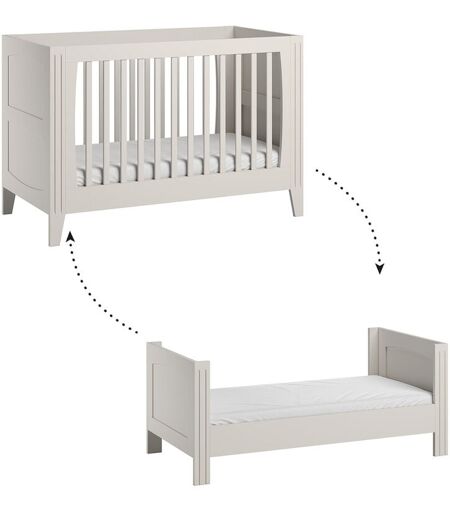 Lit bébé évolutif Vox Milenne Blanc Marque: Vox Fabrication européenne Matériaux : Panneaux de bois mélaminé Poignées en métal doré Couleur : Blanc crème clair mat Lit évolutif : Sommier inclus réglable en 3 hauteurs Hauteur du matelas conseillé : 12 cm Kit de transformation en lit enfant inclus Poids et dimensions lit évolutif : 44 kg 144 x 75 x 80 cm Sommier inclus et sans matelas. Conditionnement : Produits livrés à monter, notice incluse. Normes de sécurité : EN 71-3 garantissant la sécurité des matériaux utilisés pour les enfants EN 716-1 garantissant la sécurité et la stabilité des lits pour bébés et un espacement sécurisé entre les barreaux du lit EN 12221-1 garantissant la sécurité et la stabilité des tables à langer EN 14749 garantissant la sécurité et la stabilité des meubles de rangement EN 717-1 garantissant de faibles émissions de formaldéhyde pour un environnement sain Consignes de sécurité : Monter correctement le lit en fixant bien les éléments Respecter les charges ...