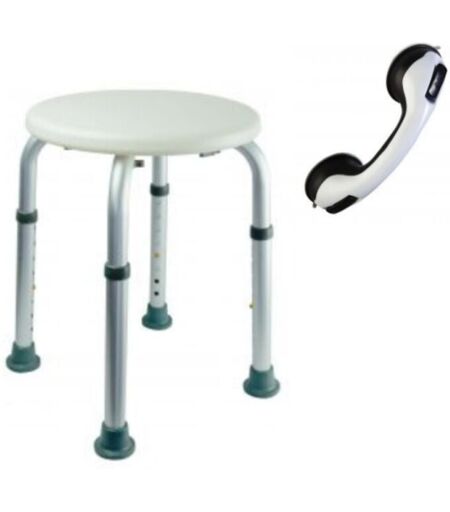 Pellet - Tabouret de douche pmr Essentiel rond hauteur réglable + Barre à ventouse de maintien pmr 30 cm