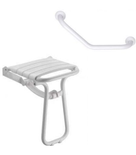 Pellet - Siège de douche pmr escamotable et barre de maintien coudée pmr Essentiel confort 135 degré