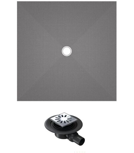 Wedi - Receveur de douche à carreler 120 x 120 Fundo Primo carré écoulement centrée + bonde horizontale
