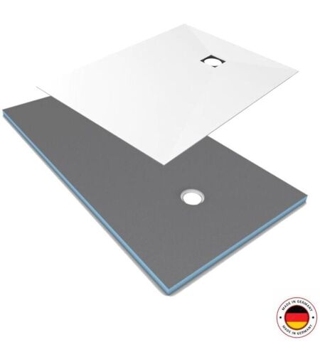 DESCRIPTION GÉNÉRALE Le receveur de douche à carreler Primo Fundo est conçu avec un noyau en mousse de polystyrène extrudé, recouvert de tissu en fibre de verre et enduit de mortier plastifié, garantissant une étanchéité totale. Avec une épaisseur de seulement 4 cm, il est idéal pour les douches italiennes et accessible aux personnes à mobilité réduite. Il est personnalisable grâce à sa fonction à carreler et peut être installé facilement sur différents types de surfaces. SPÉCIFICATIONS TECHNIQUES Épaisseur : 4 cm Pente prédéfinie : 2% Système d'étanchéité : 100% Redécoupable : jusqu'à 5 cm par côté Matériau : mousse de polystyrène extrudé avec mortier spécial et tissu en fibres de verre Garantie : 10 ans Réhausse possible : socle Fundo primo (hauteur 10 cm) Forme : rectangle Écoulement : excentré sur la largeur Longueur : 120 cm Largeur : 90 cm COMPATIBILITÉ ET ACCESSOIRES Le receveur est compatible avec divers types de revêtements et peut être associé au système complet Fundo Primo ...