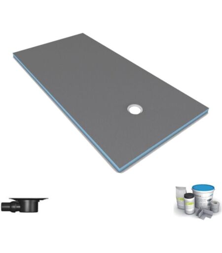 Wedi - Receveur de douche à carreler 160 x 100 Fundo Primo rectangle écoulement excentré + bonde horizontale + kit d'étanchéité