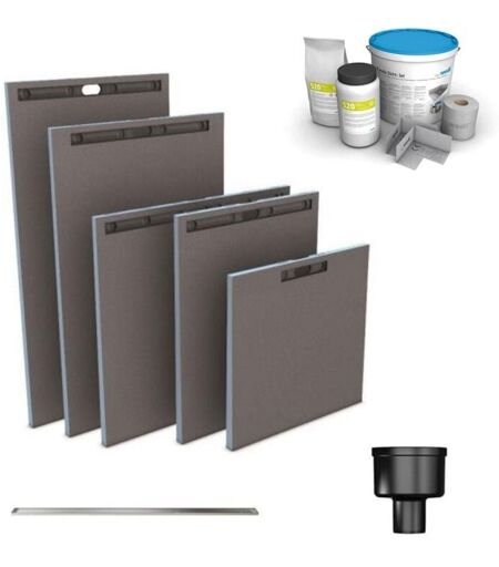 Wedi - Receveur à carreler Fundo Riolito Neo + barrette de finition inox + bonde vertical + kit d'étanchéité 120 x 100 cm