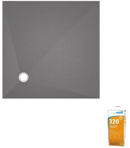 Wedi - Receveur de douche à carreler 100 x 100 Fundo Primo carré écoulement excentré + colle 320
