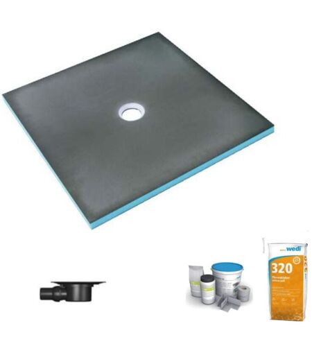 Wedi - Receveur de douche à carreler 120 x 120 Fundo Primo écoulement centrée + bonde horizontale + kit d'étanchéité + colle 320