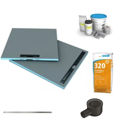 Wedi - Receveur à carreler 140 x 90 cm Fundo Riolito Neo + barrette + bonde horizontale + kit d'étanchéité et colle 320