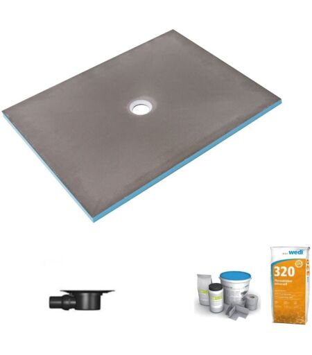 Wedi - Receveur de douche à carreler 140 x 100 Fundo Primo écoulement centré + bonde horizontale + kit d'étanchéité + colle 320