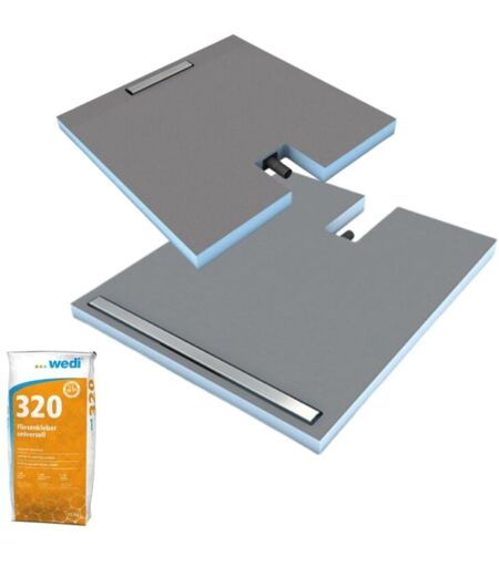 Wedi - Receveur à carreler 90 x 90 cm Fundo Plano Linea - écoulement linéaire sortie sur le petit coté + 320