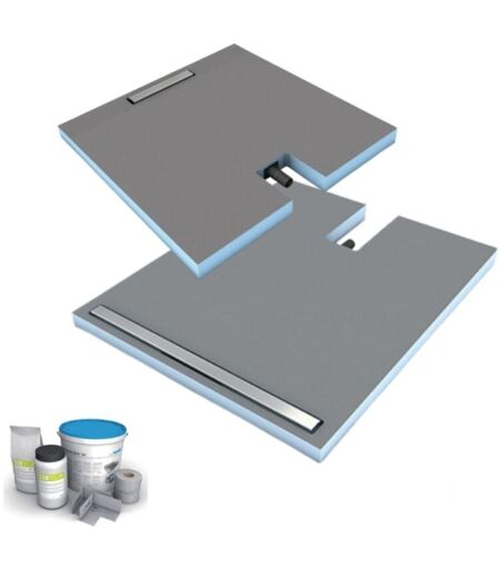 Wedi - Receveur à carreler 120 x 90 cm Fundo Plano Linea - écoulement linéaire sortie sur le petit coté + kit d'étanchéité