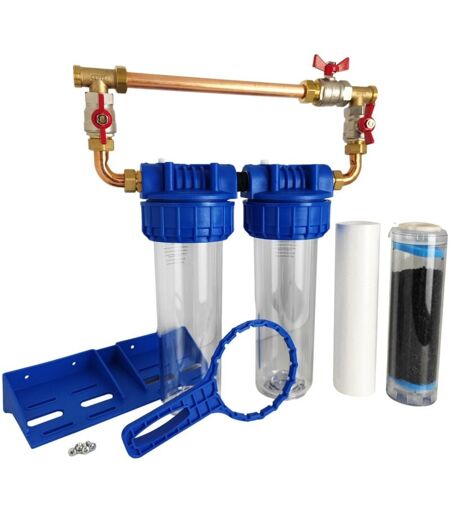 TOODO Double Porte Filtre à Eau Bypass 9 pouces 3/4 avec Cartouche 20µm Installation Facile Raccord 3/4 pouces - 20/27 Filtre Domestique Fabriqué en France