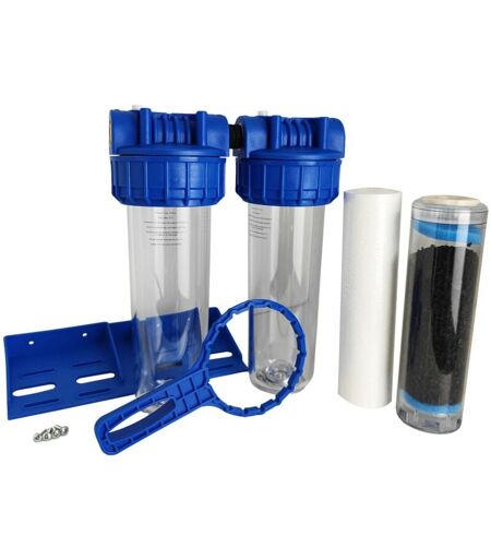 TOODO Double Porte Filtre à Eau 9 pouces 3/4 avec Cartouche 20µm Raccord 3/4 pouces - 20/27 Filtre Domestique Fabriqué en France