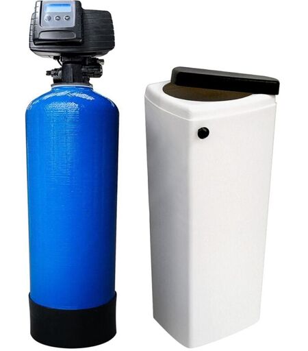 Adoucisseur d'eau bi bloc Fleck 5600 SXT - 30L Adoucisseur d'eau bi-bloc 30 litres de résine échangeuse d'ions et équipé d'une vanne Fleck 5600 SXT volumétrique permettant de supprimer les traces de calcaire sur votre installation. Idéal pour installation sous plan de travail ou pour alimenter une machine dans une cuisine industrielle par exemple : four a vapeur, lave vaiselle... Les avantages de l'adoucisseur d'eau BVE0305 : Élimine efficacement le calcaire , simplifiant ainsi les tâches ménagères . Certifiée ACS et installation simple et rapide. Prêt à l'emploi et facile à entretenir. Assemblé en France par nos équipes Pré-programmé pour une utilisation aisée. Bénéficiez d'une garantie de 7 ans incluant notre kit d'entretien annuel. La vanne Fleck 5600 SXT fabriquée par PENTAIR, leader mondial, est d'une grande fiabilité de par sa robustesse et sa simplicité. La régénération est lancée lorsque le volume d'eau est consommé. En fonction de l'application, du volume de résine et de la ...