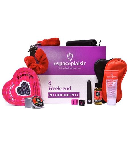 Le coffret Week-end en amoureux N°8 d’espaceplaisir est le coffret idéal pour tous les couples qui souhaitent passer un week-end terriblement romantique. Imaginé par une équipe d'expert·e·s, je réunis tous les accessoires indispensables pour vivre un moment magique rempli de jeux coquins pour votre week-end en amoureux. C'est un coffret parfait pour offrir et faire plaisir car il est exclusif à espaceplaisir avec une boîte aimantée Deluxe. Utilisez son contenu avec votre partenaire et vivez le plus coquin des week-ends à deux ! Votre coffret Week-end en amoureux N°8 contient : * Corps à Cœur Romantique de Tease & Please (https://www.espaceplaisir.fr/tease-please-corps-a-coeur-romantique.html) Le cœur romantique est un jeu osé et captivant pour les couples. Chaque papier à l'intérieur comporte une tâche à réaliser. Profitez de plus de 100 idées pleines de passion pour des moments à deux très intimes. * Stimulateur bullet Magic Bullet noir de Lovehoney (https://www.espaceplaisir.fr/lovehoney-magic-bullet-10-function-bullet-vibrator.html) Un petit vibromasseur bullet avec 10 modes de vibration et une tête affinée pour une stimulation externe précise. Il est parfait pour le plaisir solo et les préliminaires. Facile à utiliser, c'est un jouet idéal pour débuter. * Menottes en métal avec fourrure Furry Handcuffs rouge de Lovehoney (https://www.espaceplaisir.fr/lovehoney-furry-handcuffs.html) Une paire de menottes en métal avec housse en fausse fourrure noire. Elles sont parfaites pour une introduction en douceur au BDSM ! Fournies avec 2 clés et un bouton de déverrouillage rapide. * Bougie de massage Oh! fraise de Lovehoney (https://www.espaceplaisir.fr/lovehoney-oh-strawberry-massage-candle.html) Une bougie de massage parfumée à la fraise pour des massages sensuels et fruités ! Appliquez l'huile sur le corps de votre partenaire et massez sa peau délicieusement parfumée. Contient 6 huiles essentielles pour un massage nourrissant. * 2 masques en satin Oh! noir et rouge de Lovehoney (https://www.espaceplaisir.fr/lovehoney-oh-satin-blindfold.html) Deux bandeaux opaques fabriqués dans une matière satinée avec une doublure en fausse fourrure. Le masque tient en place grâce à 2 bandes élastiques pour un maintien sûr et confortable. Idéal pour les débutants comme les experts en bondage. * Huile de massage embrassable à la fraise Oh! 30 ml de Lovehoney (https://www.espaceplaisir.fr/lovehoney-oh-strawberry-kissable-massage-oil-30-ml.html) Une huile de massage embrassable et délicieusement parfumée pour des massages relaxants et des préliminaires sensuels. Infusée avec des huiles essentielles. Petit format pratique pour les voyages et les week-ends coquins. * Dés Kama Sutra Love Dice de Tease & Please (https://www.espaceplaisir.fr/tease-please-love-dice-kama-sutra.html) Deux dés érotiques pour des frissons d'anticipation et de nouveauté ! Un dé comprend 6 positions du Kama Sutra et l'autre propose 6 lieux différents où vous devrez essayer ces positions. Un monde... ...