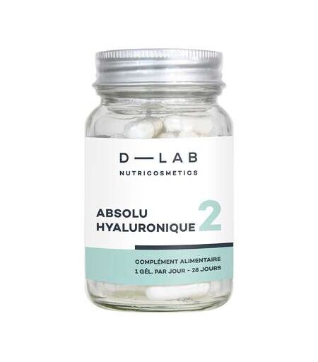 Ce spectre d'acides hyaluroniques agit en synergie pour combler parfaitement tous les besoins de la peau. Cet actif naturel issu de la bio-fermentation repulpe et gorge d'eau les cellules cutanées pour combler les rides et ridules. Il laisse place à une peau rebondie, souple et visiblement moins marquée par les signes de l'âge. L'efficacité de l'Absolu Hyaluronique D-LAB NUTRICOSMETICS a été testée par étude clinique(1) et son absorption au niveau intestinal a été prouvée scientifiquement. Pour des effets optimaux et durables sur la peau, il est conseillé de suivre cette cure au moins 2 mois de suite. (1) Étude clinique en double aveugle, contrôlée par placebo sur une durée de 28 jours et réalisée sur 15 et 60 femmes. ...