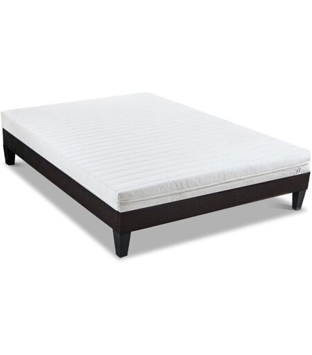 Matelas CARACTERISTIQUES : Dimensions disponibles (cm) : 90x190 - 90x200 - 140x190 - 140x200 - 160x200 - 180x200 Epaisseur du matelas : 12 cm Technologie : Latex Like Accueil : Tonique Soutien : Ferme Indépendance de couchage : Très bonne Aération : Très bonne Fabrication : Française Déhoussable : Oui Conditionnement : Compressé roulé Garantie : 10 ans COMPOSITION : Âme intérieure du matelas (certifiée CertiPUR) : 10 cm de mousse Haute Densité de 25 kg/m³ + 2 cm de latex Like de 65 kg/m³ Coutil (labellisé Oeko-Tex) : Tissu stretch 100% polyester - Garnissage : 250 gr/m² de fibres PES POINTS FORTS : Confort Indépendance de couchage Soutien Hygiène Sommier CARACTERISTIQUES : Dimensions disponibles (cm) : 90x190 - 90x200 - 140x190 - 140x200 - 160x200 - 180x200 Type de suspension : Lattes actives Technologie : Tri-lattes Hauteur (avec pieds) : 30 cm Nombre de pieds : 4 Nombre de lattes : 24 Matière : Bois Couleur revêtement : Gris Conditionnement : En kit Garantie : 5 ans POINTS FORTS : ...