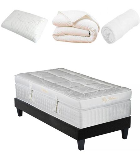 3Suisses : Profitez d?une bonne nuit de sommeil avec cet Ensemble prêt à dormir EMPEREUR - Victoire 15cm. Le sommier apportera du cachet à votre intérieur et promet résistance et maintien irréprochable. Le matelas assure un accueil progressif, une excellente indépendance de couchage, un soutien ferme, une bonne aération, une hygiène accrue et de l?ergonomie. Le tout est livré avec des accessoires pratiques. CARACTERISTIQUES Matelas : Dimensions : 90 x 190 cm, 90 x 200 cm, 140 x 190 cm, 140 x 200 cm, 160 x 200 cm, 180 x 200 cm Epaisseur : 15 cm Technologie : Mémoire de forme Accueil : Progressif Soutien : Ferme Indépendance de couchage : 5/5 Aération : 4/5 Fabrication : Française Déhoussable : Oui Garantie : 10 ans Livré compressé roulé COMPOSITION : Âme intérieure (CertiPUR) : 21 cm de mousse HD 30 kg/m³ Coutil (Oeko-Tex) : Tissu Jacquard - Garnissage : 1,5 cm de mousse MDF 60 kg/m³ + 1,5 cm de mousse Hypersoft 60 kg/m³ Topper : 6 cm de mousse MDF 60 kg/m³ avec gel rafraîchissant POINTS FORTS : Ergonomie Indépendance de couchage Thermorégulation Hygiène CARACTERISTIQUES Sommier : Dimensions : 90 x 190 cm, 90 x 200 cm, 140 x 190 cm, 140 x 200 cm, 160 x 200 cm, 180 x 200 cm Suspension : Lattes Technologie : Tri-lattes Hauteur (avec pieds) : 30 cm Nombre de pieds : 5 Nombre de lattes : 24, 2 x 24 Matière : Bois Couleur : Gris Garantie : 5 ans Livré en kit POINTS FORTS : Robustesse Confort Intégrable dans un cadre de lit Accessoires inclus 1 ou 2 Oreillers mémoire de forme 40 x 60 cm 1 Couette synthétique thermo-isolante 1 Protège matelas absorbant Marque: Bellecour ...
