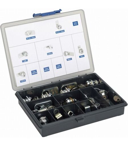 Kit RONIS Assortiment de serrure de boites aux lettres - 23 éléments - 1236 - Contenu de la malette : 1 Batteuse DAD + came type 1048 N° 4001 1 Batteuse DAD sans came type 911 N° 4002 1 Serrure 1112 N° 303 1 Came coudée crochet 1112N N°58 1 Serrure modèle RENZ long + came N° 386 1 Serrure modèle RENZ court + came N° 385 5 Came plate 911-6 N° 225 2 Serrure 1160A + came coudée N° 1160PL11 3 Serrure 911A N° 238 3 Serrure 911B N° 397 1 Serrure 1048A N° 6703 1 Came plate 1048-5 N° 671 - Produit expédié depuis notre plateforme située à Rodez en Aveyron - produit conforme aux normes françaises - Assortiment de batteuses pour remplacement sur les boites aux lettres ...