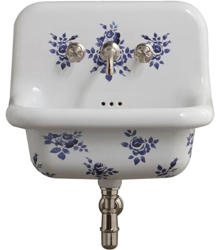 Bleu Provence - Lavabo Rétro en Céramique - 60 cm - True Colors - Flowers - Blanc