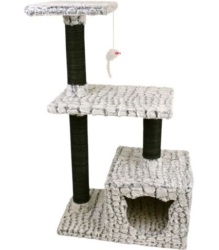 Arbre et maison du Châtelain :Arbre à chat maison tête de chat, 2 étages, jouet, 30x48x84cm, gris et noirMatière : Fourrure synthétique, sisal.Couleur : GrisLivré en Kit => à monter ...