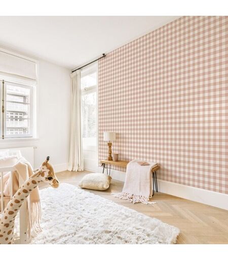 99déco - Papier peint raccordable - Vichy - Rose - intissé : 150g/m² - 4 lés : 192x270cm
