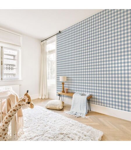 99déco - Papier peint raccordable - Vichy - Bleu - intissé : 150g/m² - 4 lés : 192x270cm