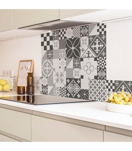99DÉCO Fond de hotte adhésif en aluminium effet carreaux de ciment gris - 70x90 cm