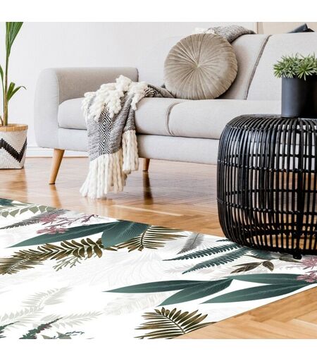 Tapis Vinyle Antidérapant Jungle Blanc (Fabrication Française). Voyagez de chez vous avec ce tapis en vinyle au style jungle, facile d'entretien, disponible en 3 tailles. Recréez l'atmosphère chaleureuse de la jungle avec ce tapis en vinyle coloré. Ses motifs floraux apporteront un charme naturel et une ambiance chaleureuse à votre intérieur. Conçu et fabriqué en France, ce tapis allie esthétisme et praticité. Son revêtement antidérapant assure une sécurité optimale, tandis que sa composition en vinyle le rend facile à nettoyer et résistant à l'usure. Caractéristiques : Style : Jungle Motif : Nature Matériau : 85% PVC / 15% Polyester Tailles disponibles : Médium : 50 x 120 cm MédiumBis : 50 x 200 cm Large : 120 x 200 cm Épaisseur : 1.6 mm Couleur : Multicolore Fabrication : Française, dans notre atelier à Agen Avantages : Antidérapant : Classe DS (norme EN 13893) pour une sécurité optimale. Résistant au feu : Classement Bfl-S1 (norme EN 13501-1 - exigence M3 - retardant feu). Facile ...