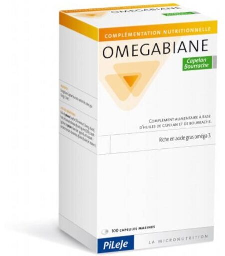 Complément alimentaire à utiliser dans le cadre d’une alimentation variée, équilibrée et d’un mode de vie sain.Omegabiane oméga 3-6-9 est un complément alimentaire à base d'huiles de poissons (560 mg pour 2 capsules) et de bourrache (460 mg pour 2 capsules). Omegabiane oméga 3-6-9 est riche en acides gras insaturés et apporte une source d'oméga 3 qui contribue notamment au bon fonctionnement du système cardiovasculaire.IngrédientsHuile de POISSONS (capelan (51% minimum), hareng, sébaste), huile de bourrache Borago offinicalis (graines) (28%), capsule (gélatine de POISSON, humectant : glycérol), anti-oxydant : extrait de romarin Rosmarinus officinalis (feuilles) et vitamine E.Allergènes : Poisson.Conseils d'utilisation2 capsules par jour à avaler avec un grand verre d'eau, de préférence pendant les repas.Précautions d'emploiConserver dans un endroit frais et sec.Tenir hors de portée des jeunes enfants.Ne pas dépasser la dose recommandée.Poids net100 capsulesAdresse du FabricantPiLeJe Benelux,The Nestwork,Avenue de Broqueville 12,1150 BruxellesBelgique ...