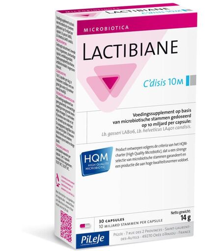 Complément alimentaire à utiliser dans le cadre d’une alimentation variée, équilibrée et d’un mode de vie sain.Complément alimentaire à base de 2 souches microbiotiques dosées à 10 milliards par gélule : Lactobacillus gasseri LA806 Lactobacillus helveticus LA401 candisisIndicationsLactibiane Cnd 10M est un produit conçu selon les critères de la charte HQM (Haute Qualité Microbiotique), garantissant une sélection rigoureuse des souches microbiotiques et une fabrication répondant à des hauts standards de qualité. Composition:Amidon de maïs surséché, ferments lactiques, gélule d’origine végétale, épaississant : hydroxypropylmethyl cellulose, antiagglomérant : stéarate de magnésium.Valeur nutritionelle: Par gélule Pour 2 gélules Ferments lactiques 10.10°UFC 20.10°UFC Conseil d'utilisation:1 à 2 gélules par jour, à moduler. À avaler avec un grand verre d’eau, de préférence avant un repas.Précautions d'emploi:Ne pas dépasser les doses journalières recommandées.Ce complément alimentaire ne peut se substituer à une alimentation variée et équilibrée et à un mode de vie sain.À tenir hors de portée des enfants.Conserver dans un endroit frais et sec.À consommer de préférence avant fin et n° de lot mentionnés sur la face intérieure de l’étui.Poids net: 14 g = 30 gélulesFabricant: PiLeJe 7, rue des Deux Provinces Saint-Laurent-Des-Autels 49 270 Orée d'Anjou ...