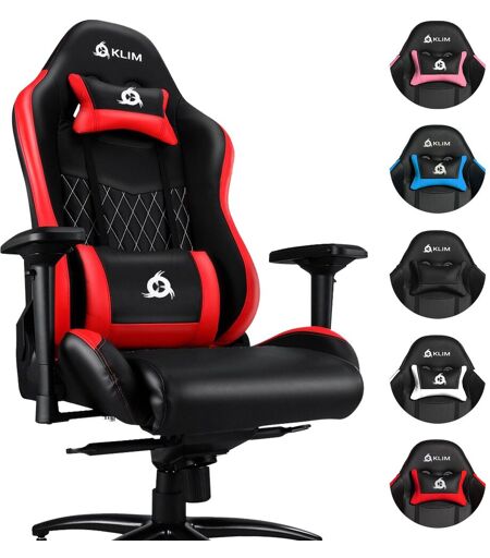 Klim Esports - Chaise Gaming Rouge + Simili Cuir Et Matériaux Premium Haute Qualité + Chaise Gamer Inclinable + Coussin