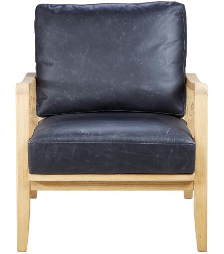 Zago Fauteuil cuir noir pieds frêne naturel unisex
