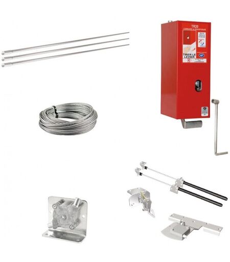 Pour équiper un vélux : 1 treuil mécanique certifé NF + 10 barres de tube acier tulipé de 0,50 m + 20 mètres de câble acier Ø 2,4 mm + 2 poulies de renvoi sous carter + 1 équipement complet pour la fenêtre de toit .. ...