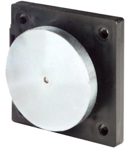 Contre plaque composé d'un disque en acier et une plaque à quatre trous pour la fixation. Le disque est amortie, par raport à la plaque, grâce au matériau élastique interposé entre les deux éléments. .. ...