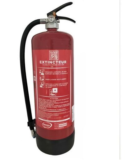 Extincteur Eau Pulvérisée avec additif AVD de 9L neuf avec son support métallique 2022 Certifié CE / EN3 / Homologué marine Nouveau: QR code d'auto-formation à son utilisation Durée de fonctionnement: 41s. Agent extincteur: 9L d'eau et de produit additif AVD. Agent propulseur: Azote à 20 bars de pression. .. ...