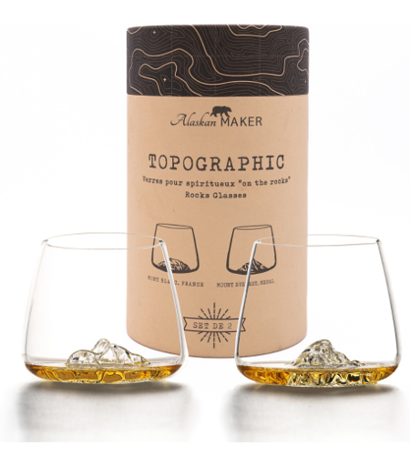 Set de 2 verres à spiritueux alaskan maker topographic everest & mont blanc en verre cristallin