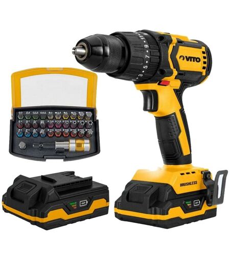 Vito - Perceuse Visseuse Brushless 20V + 2 Batteries Lithium 4Ah + Coffret 32 Embouts + Chargeur et Mallette