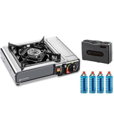 Kemper - Réchaud à gaz 2200W inox + 4 cartouches de gaz 190g