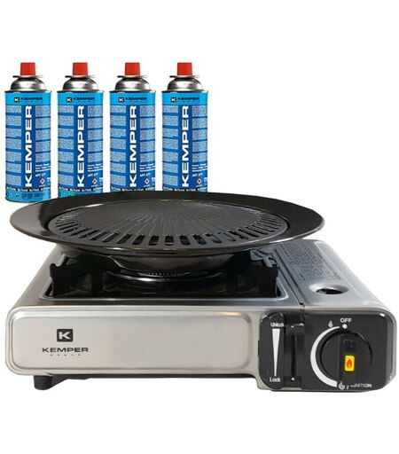 Kemper - Barbecue gaz Grill 2en1 Réchaud gaz piézo 2200 w + 4 cartouches gaz butane