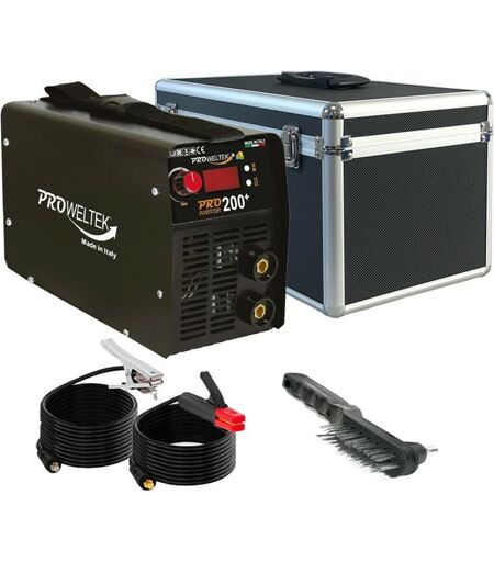 Poste à souder Professionnel PRO200+ Inverter à affichage numérique de la gamme Proweltek. Conçu pour souder toutes baguettes de diamètre 1.6 à 5 mm, il est capable de souder en continu (duty cycle) grâce à son fort facteur de marche de 200A à 60%. Compatible aux groupes électrogènes. Puissance optimale pour un poids de 4.8 kg. Ce poste de soudure électrique Proweltek est livré avec un masque de protection, un jeu de pinces et porte électrode de qualité dans son coffre luxe à poignée à armatures métal. Points Forts : - Fort facteur de marche 200A à 60% pour un soudage tout confort - Protection thermostatique: Système de sécurité qui coupe le courant électrique de soudage en cas de température excessive. - Ventilation HOT FORCE : Conception optimale du boitier et de la position des ventilateurs pour réduire le temps de refroidissement. - Amorçage assisté : l'électrode est mise en température par avance pour pouvoir souder immédiatement. - Système anti-collage de l'électrode coupe le ...