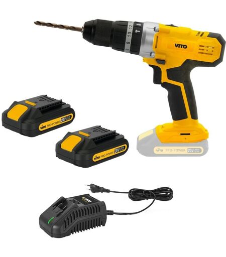 Vito - Perceuse Visseuse sans fil 20V + 2 Batteries 2.0 Ah + Chargeur rapide