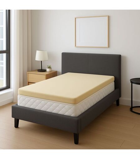 Description du produit * Sur-matelas 100% contact Mousse à Mémoire de Forme d'une densité de 55 Kg/m3 . * Hauteur Totale 5 cm et Garanti 5 ans . La face été matelas est Antidérapante. * Elle est un moyen de purification naturelle et favorise la prolifération cellulaire. * Il est déhoussable et la est Lavable à 30 â¡C . , transformant ainsi le tissu en véhicule de bien-tre. . ...