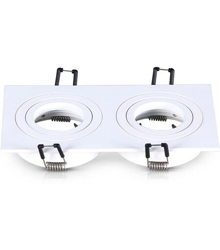 Support de Spot double orientable en aluminium - Norme NF C15-100 - Finition blanc - 175 x 93 mm. Forme : Rectangulaire Finition / Couleur : Blanc Matériaux : Aluminium IP (Indice de Protection) : IP20 Dimensions perçage : 157 x 80 mm Longueur : 175 mm Largeur : 93 mm Dimensions d'encastrement : 28 mm Angle d'inclinaison (en °) : 30 Poids : 0.227 kg Certification(s) : CE & RoHS Garantie constructeur (en année(s)) : 2 Batterie(s) ou pile(s) incluse(s) : non Contient du bois : non ...
