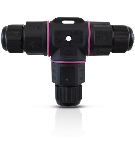 Description générale Ce connecteur étanche en forme de T est conçu pour des connexions faciles et sûres, que ce soit pour des installations intérieures ou extérieures. Il est idéal pour relier des câbles souples ou rigides, garantissant une protection optimale contre l'humidité et la poussière grâce à sa certification IP68. Spécifications techniques Tension maximale : 450V Courant maximal : 24A Dimensions (L x l x H) : 98 x 64,5 x 16 mm Poids : 0,045 kg Section de câble admissible : 0,5 à 2,5 mm² Protection : IP68 Finition : Noir Matériau : Plastique ignifugé Conformité : CE, RoHS, EMC Garantie : 2 ans Compatibilité et accessoires Ce connecteur est compatible avec des fils souples et rigides de 0,5 à 2,5 mm², et peut être utilisé dans divers contextes d'usage pour des installations électriques. Installation La conception de ce connecteur permet une installation rapide et simple, avec des borniers à vis intégrés pour une connexion sécurisée des câbles. Utilisation Ce connecteur est ...